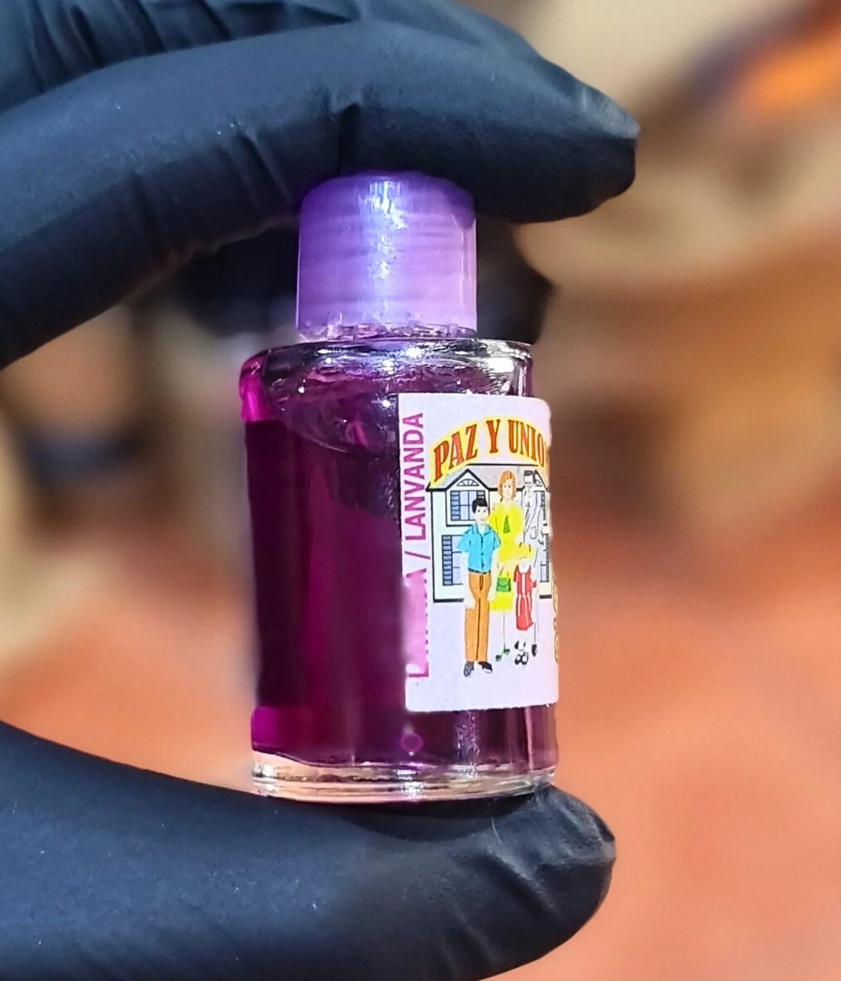 Localiza el frasco con la etiqueta “Paz y Unión – Lavanda”.