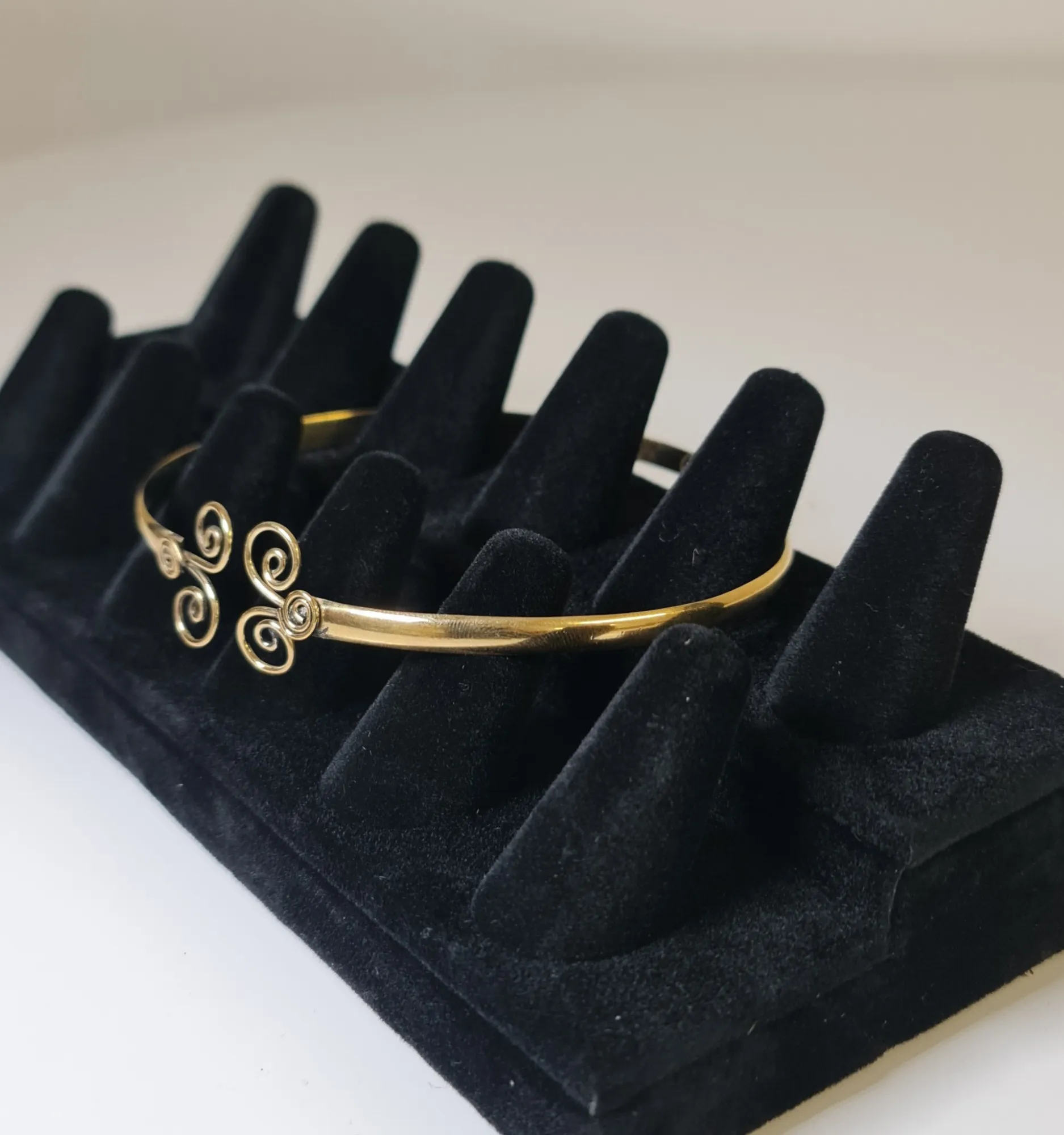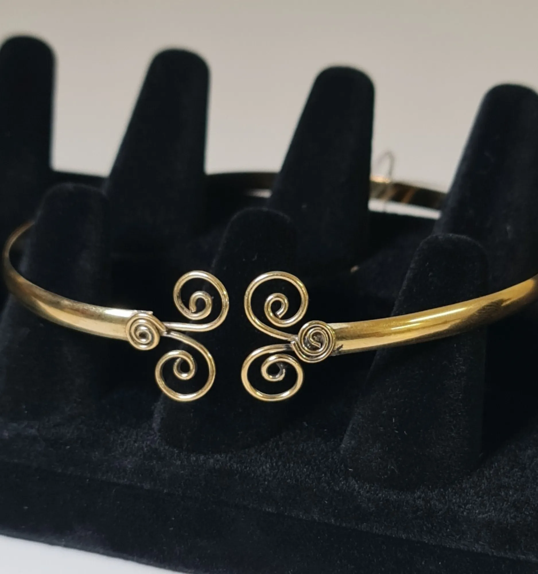 El uso del bronce en la joyería data de miles de años, siendo uno de los primeros metales empleados por el ser humano para crear ornamentos y accesorios. Las espirales, que adornan este brazalete, han sido utilizadas en diversas culturas antiguas, desde los celtas hasta los griegos, como símbolo de renovación y continuidad.