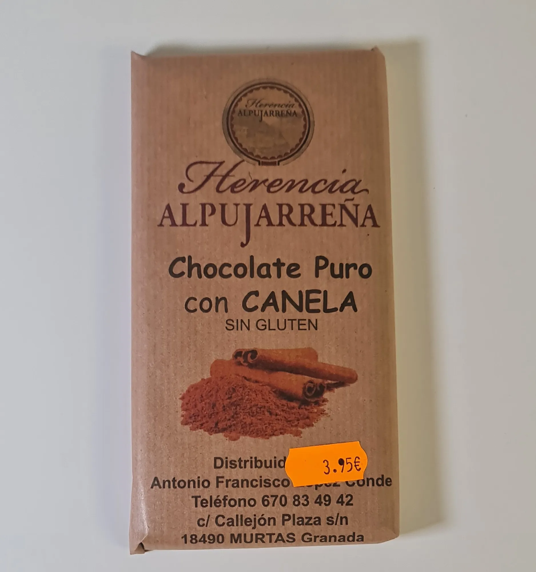 Chocolate Puro con Canela Sin Gluten Herencia Alpujarreña