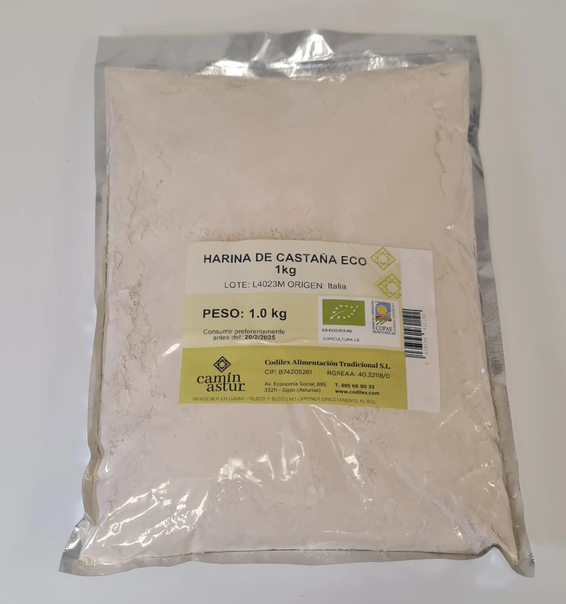 La Harina de Castañas Eco Camin Astur es un producto ecológico de alta calidad, elaborado a partir de castañas seleccionadas y molidas finamente. Esta harina es una excelente alternativa sin gluten, rica en nutrientes y con un sabor naturalmente dulce y suave, ideal para una amplia variedad de recetas.