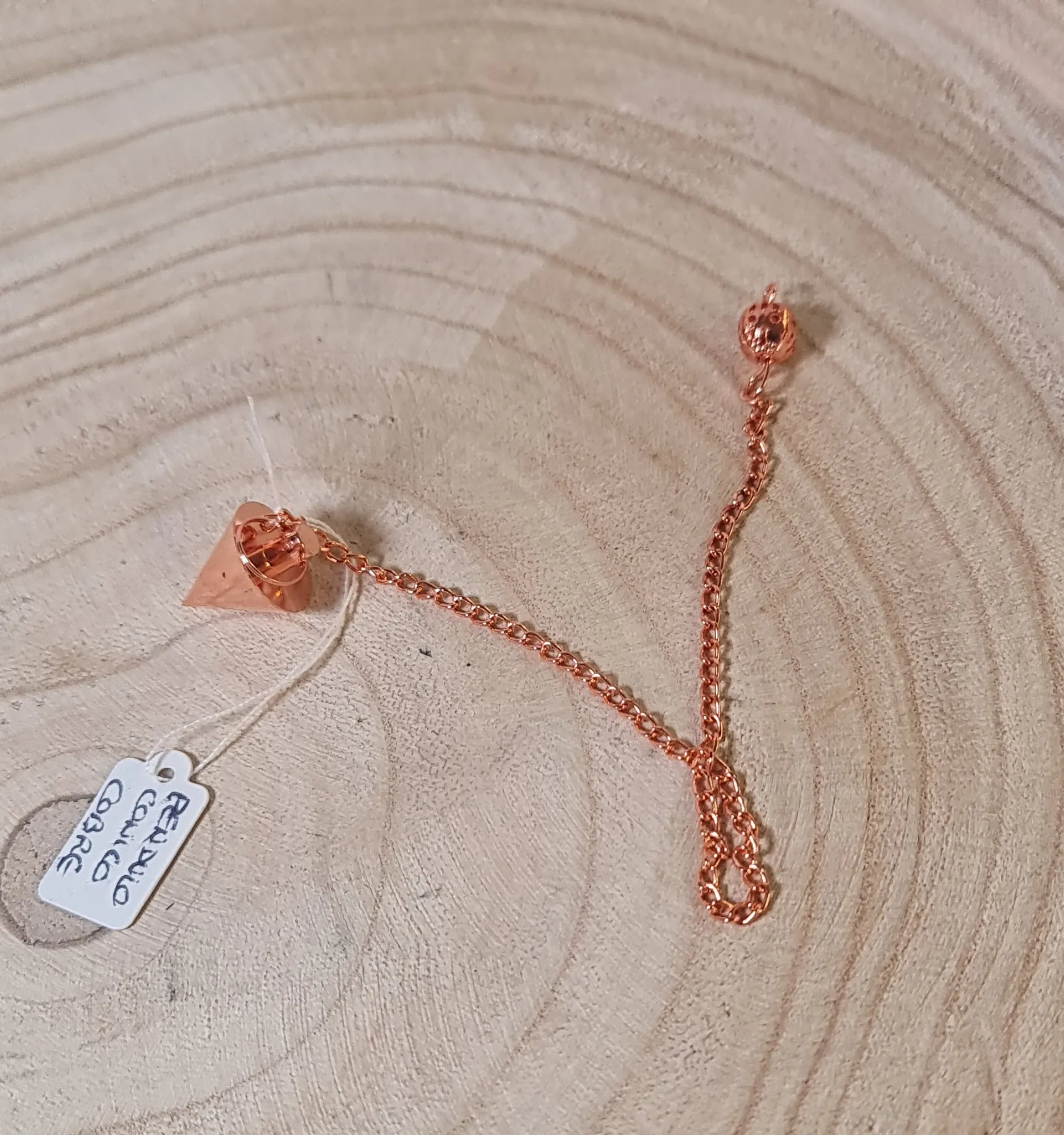 El péndulo cónico de cobre es una herramienta de radiestesia y sanación energética, conocida por sus propiedades de conducción de energía. Este péndulo está hecho completamente de cobre, un material que facilita la transmisión de energía, lo que lo convierte en un instrumento ideal para realizar diagnósticos energéticos, equilibrar chakras y obtener respuestas precisas a través de la radiestesia.