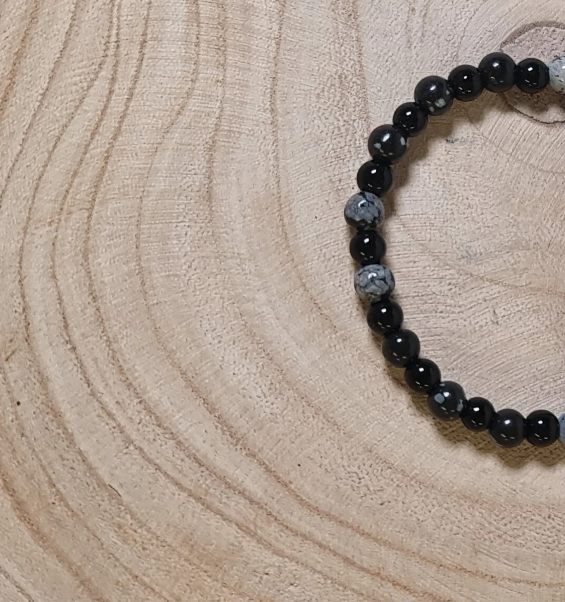 La obsidiana nevada ha sido valorada desde tiempos antiguos por sus propiedades protectoras y curativas. Se cree que protege a quienes la portan de energías negativas y, al mismo tiempo, promueve una mente clara y enfocada. Por otro lado, el ónix negro ha sido utilizado por diversas culturas como una piedra de protección y estabilidad emocional, proporcionando fuerza y resistencia frente a situaciones difíciles.
