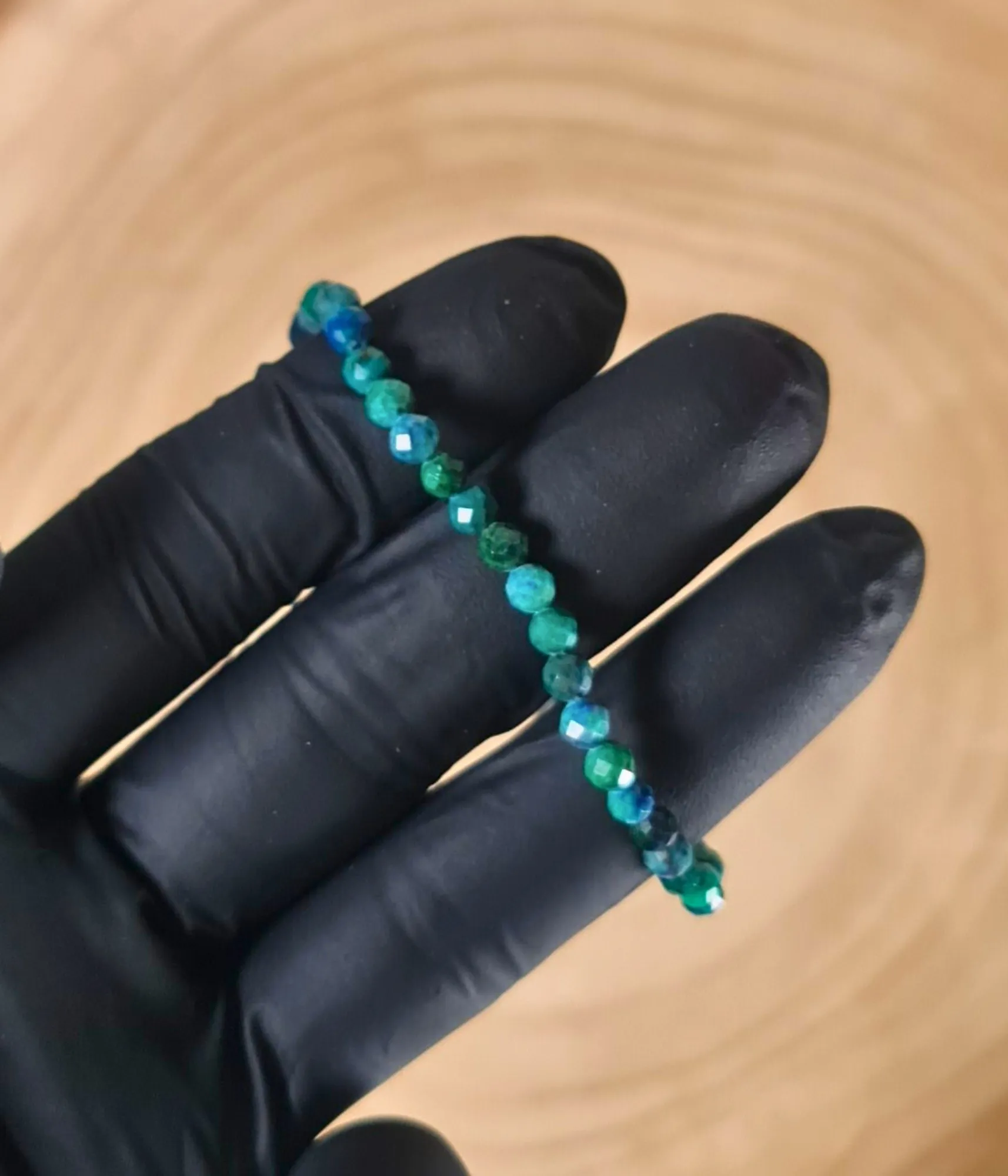 La Pulsera Azurita Facetada 4mm es una joya de conexión interior, diseñada con pequeñas cuentas facetadas que resplandecen en tonos azules y verdes intensos. Su belleza natural se combina con poderosas propiedades energéticas que la convierten en una herramienta ideal para quienes buscan equilibrio mental, claridad emocional y desarrollo espiritual.