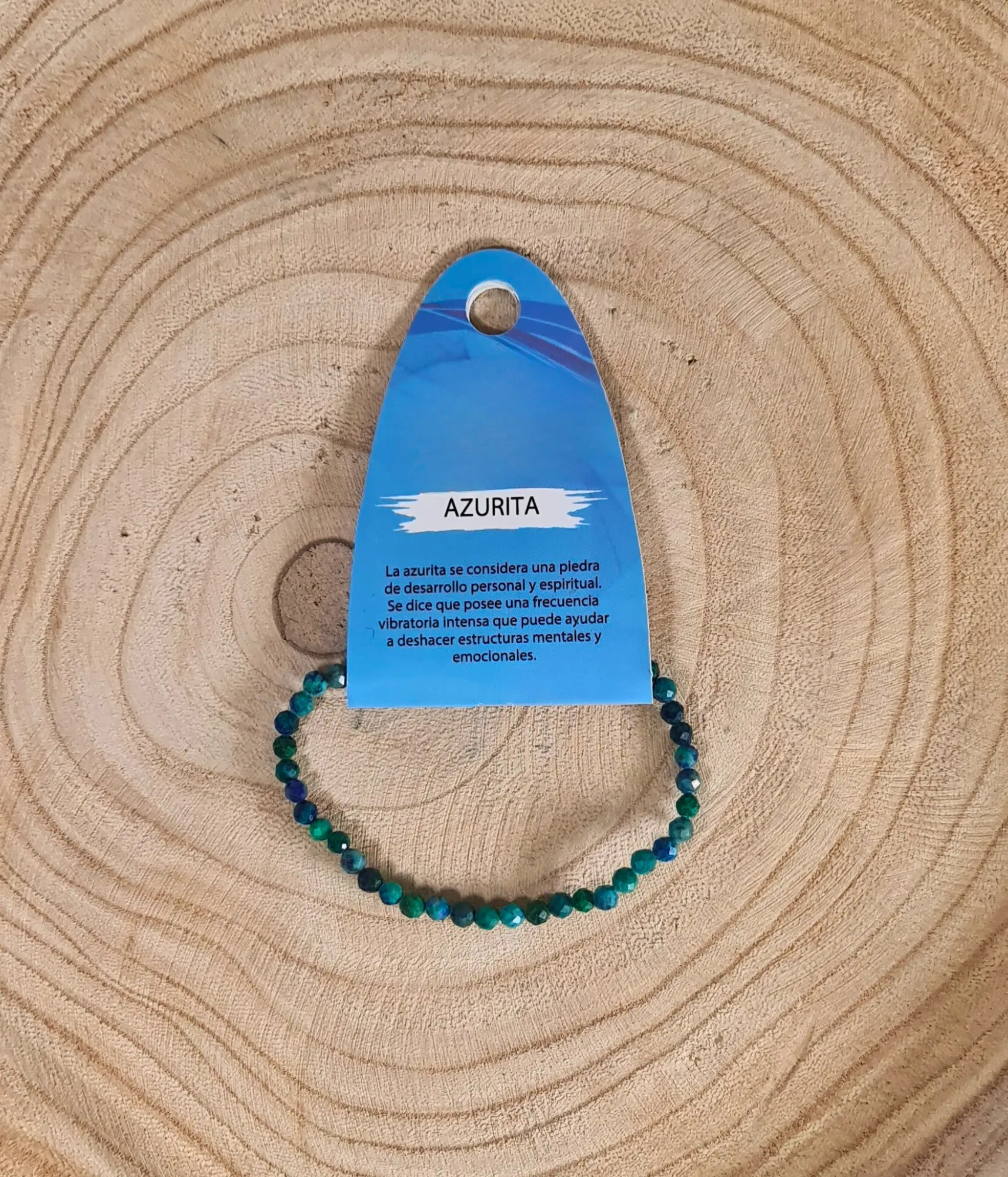La azurita es reconocida por su capacidad para disolver bloqueos mentales y abrir el camino hacia la intuición y la comprensión profunda. Esta pulsera, gracias a su diseño fino y elegante, se adapta fácilmente a cualquier estilo, aportando además un valor simbólico único. Perfecta para quienes practican meditación, desean potenciar su memoria o simplemente buscan calma en el día a día.