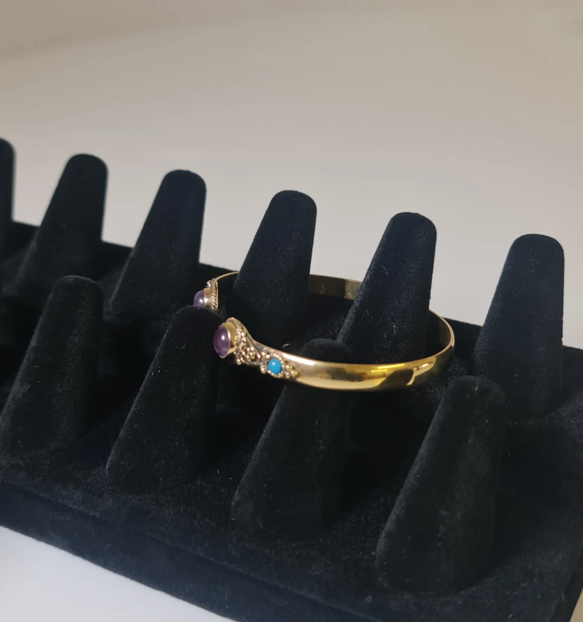 La amatista ha sido apreciada por su belleza y propiedades protectoras desde tiempos antiguos. Civilizaciones como la egipcia y la griega valoraban la amatista por su capacidad para mantener a raya las malas energías y promover la tranquilidad. La combinación con el bronce, un metal antiguo utilizado en la fabricación de armas y joyería, refuerza aún más su valor histórico y espiritual.
