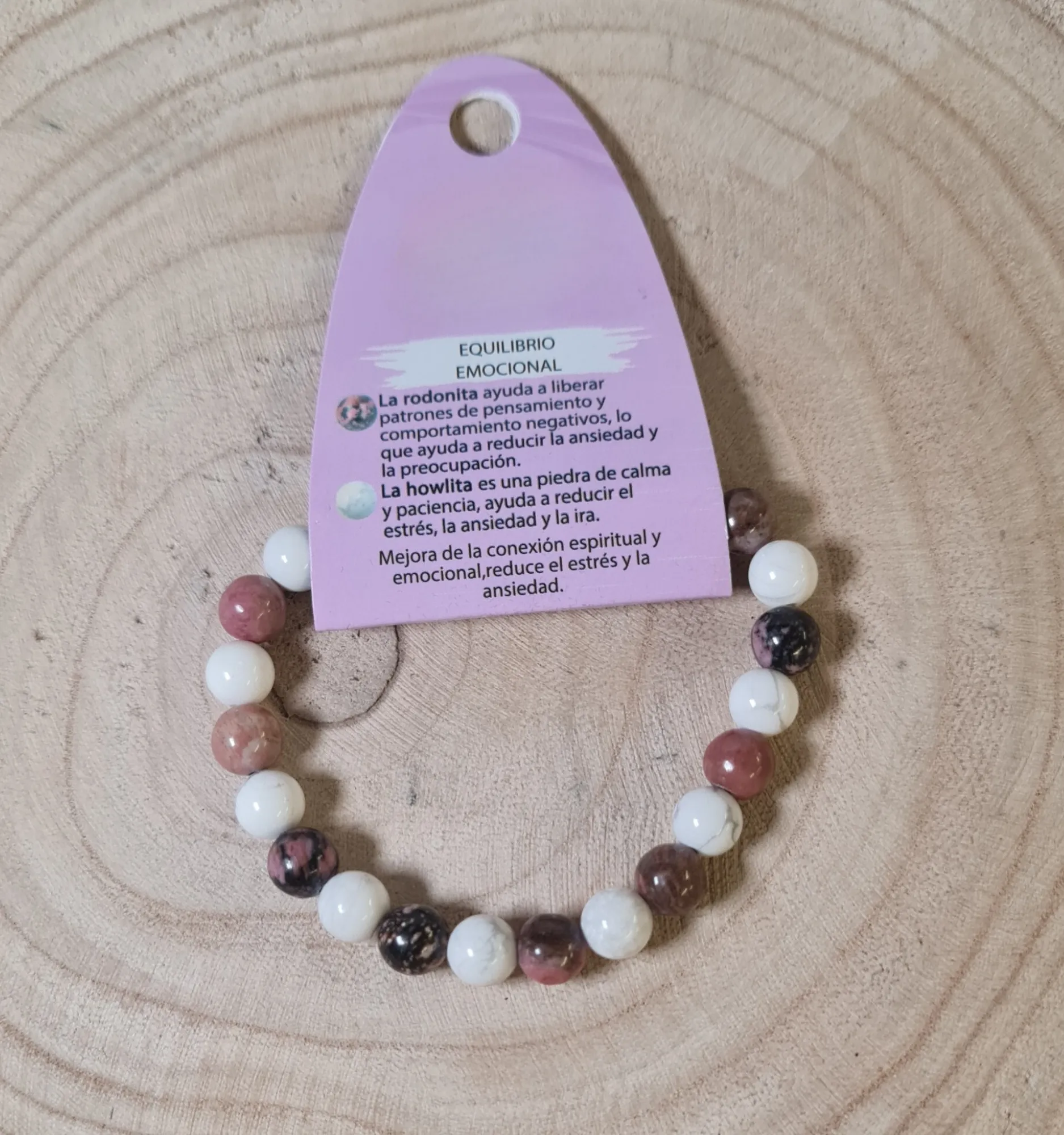 La pulsera equilibrio emocional grande combina piedras seleccionadas para equilibrar y armonizar tu estado emocional. Fabricada con rodonita y howlita, esta pulsera se ha diseñado específicamente para ayudar a reducir el estrés, la ansiedad y la tensión emocional, promoviendo la paz interior y la estabilidad mental.
