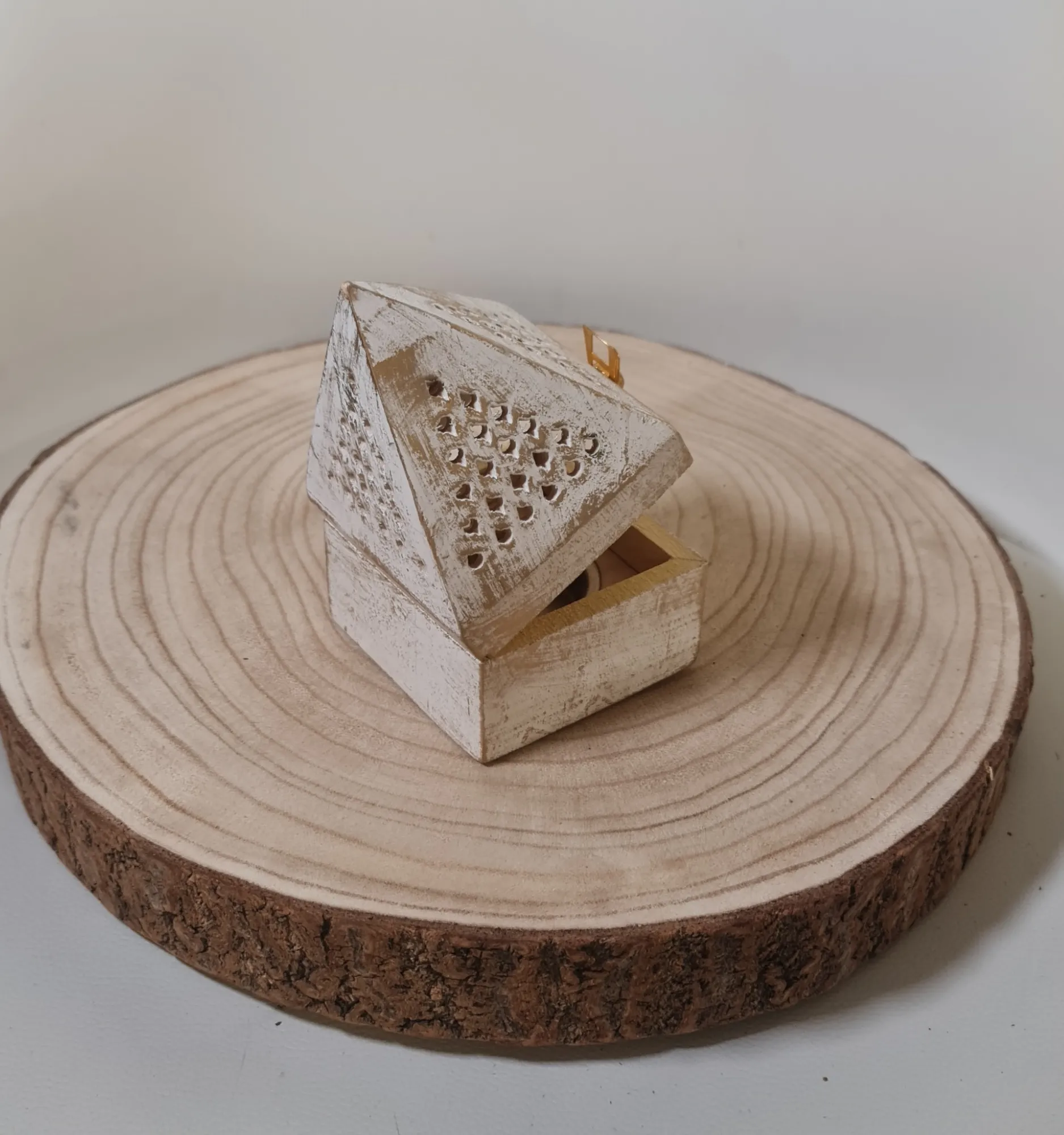 El Quemador de Reflujo Pirámide Madera es un accesorio decorativo y funcional, ideal para crear un ambiente relajante en cualquier espacio. Diseñado en forma de pirámide, está fabricado con madera de alta calidad y cuenta con un acabado envejecido que le otorga un toque rústico y elegante. Este quemador es perfecto para utilizar con conos de reflujo, ya que su estructura permite que el humo fluya hacia abajo, creando un efecto visual hipnótico y armonioso.