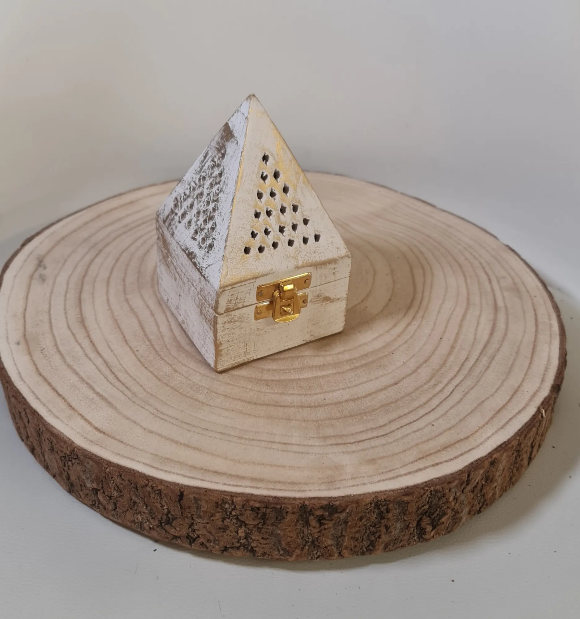 El uso de inciensos y quemadores tiene sus raíces en las antiguas tradiciones orientales, especialmente en la India y China, donde se utilizaban para rituales de purificación y ofrendas religiosas. Con el paso del tiempo, el quemador de incienso ha evolucionado en diseño y funcionalidad, adaptándose a diferentes culturas y estilos de vida. La pirámide, además de ser un símbolo de poder y equilibrio, se asocia con la canalización de energías, lo que lo convierte en una pieza perfecta para quienes buscan armonizar sus espacios de manera elegante y natural.