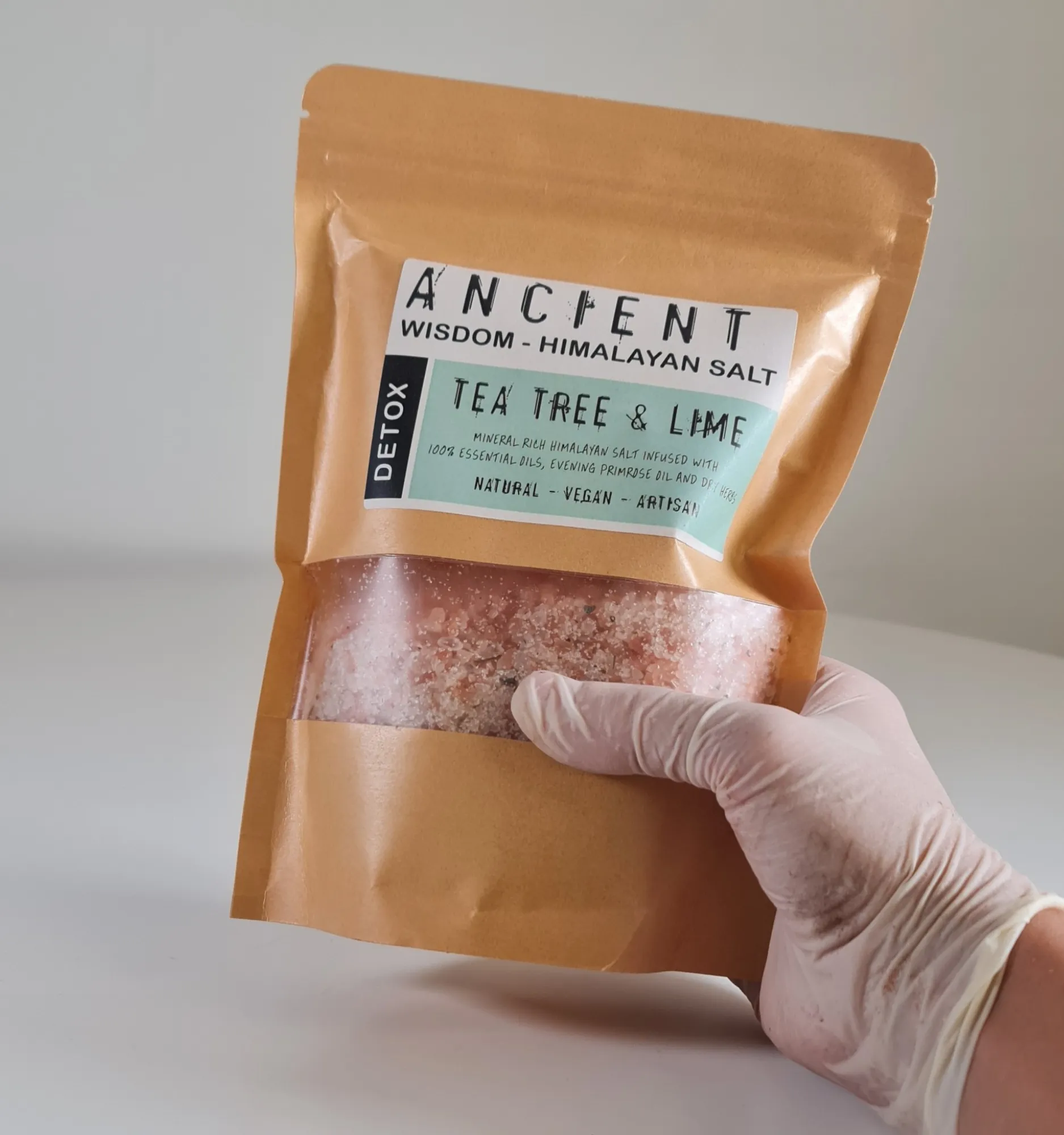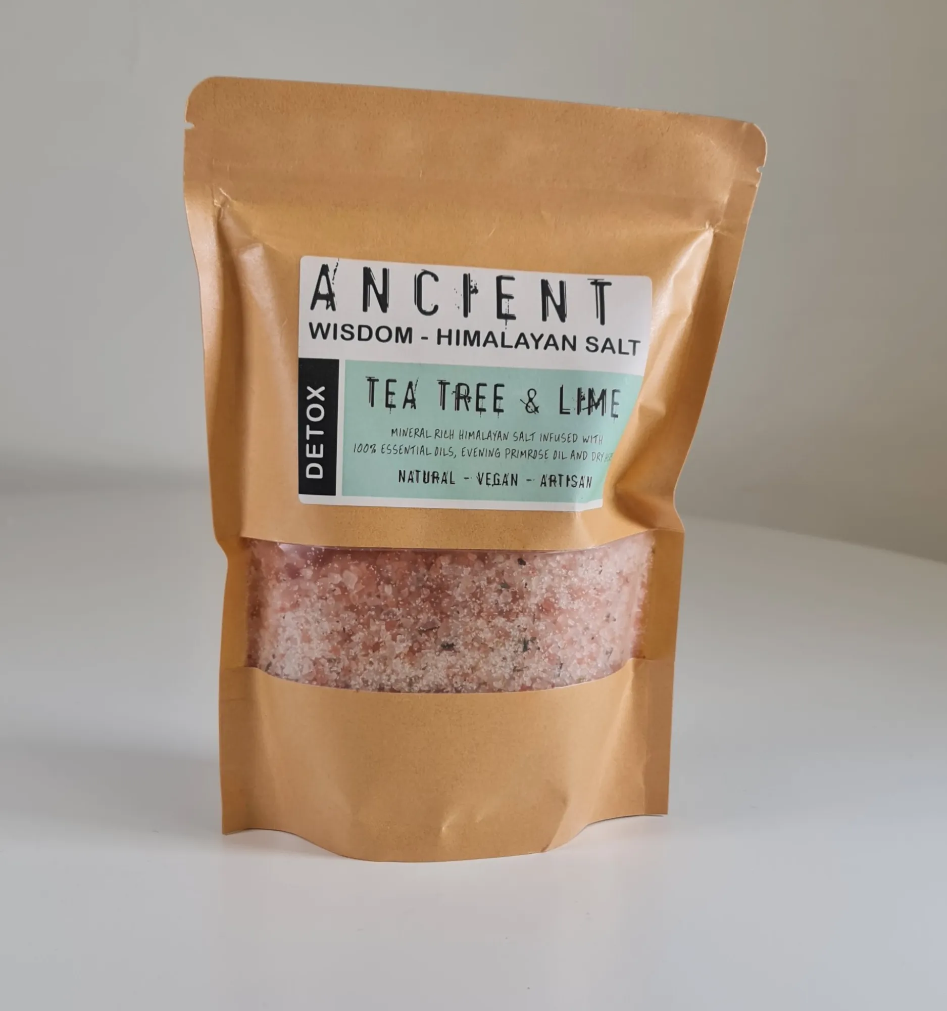 La sal del Himalaya, también conocida como «oro blanco», se ha utilizado durante siglos por sus propiedades curativas y desintoxicantes. Esta sal se extrae de las antiguas minas de sal en las montañas del Himalaya, donde se ha preservado en su estado más puro. La combinación de sal del Himalaya con aceites esenciales de árbol de té y lima aporta no solo beneficios para la piel, sino también una experiencia de spa en casa.