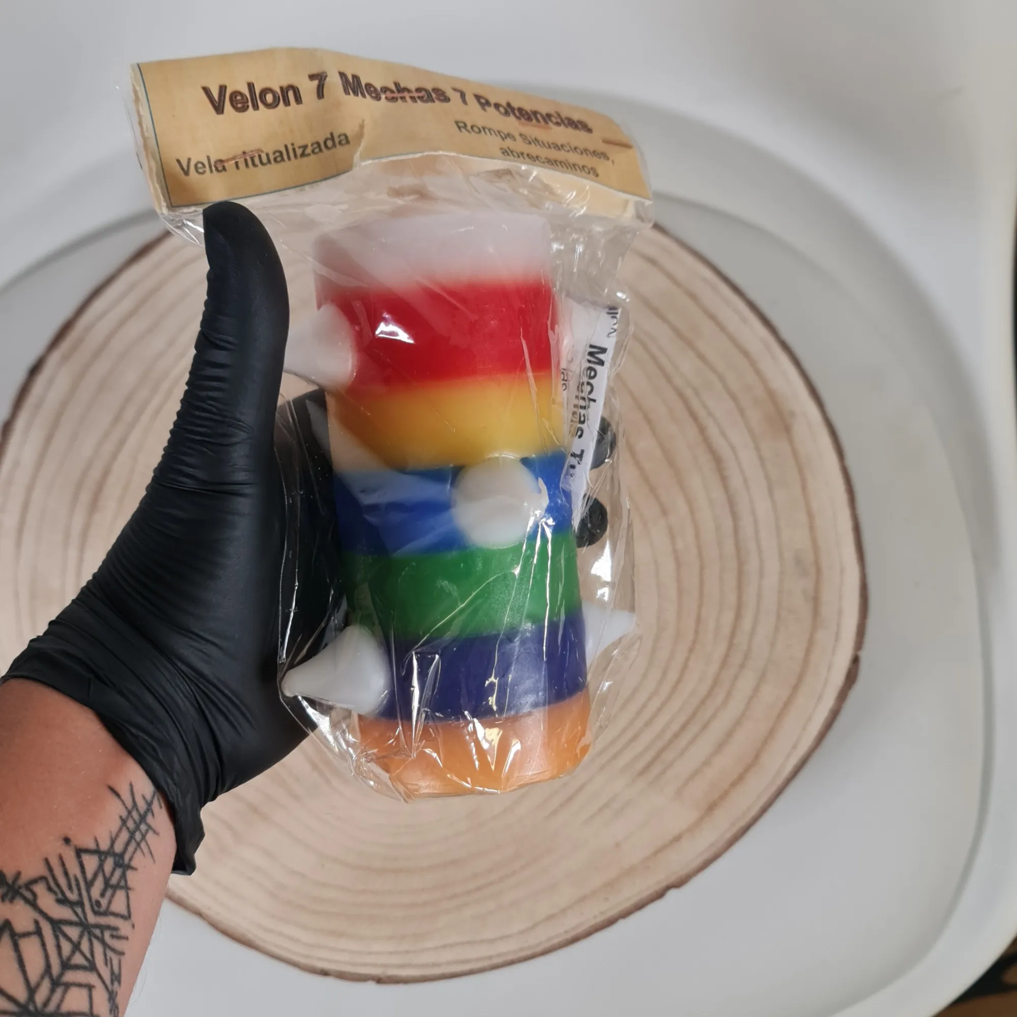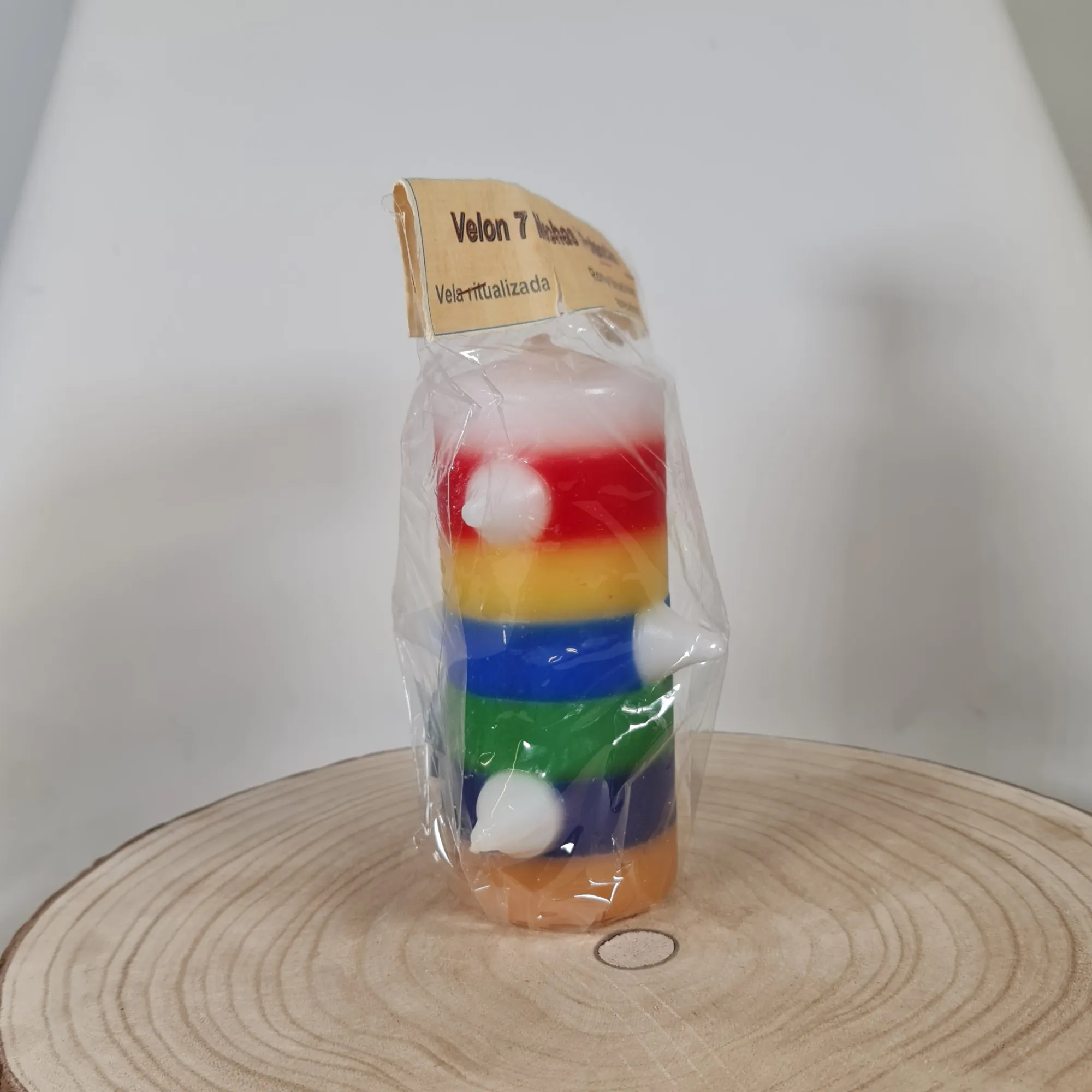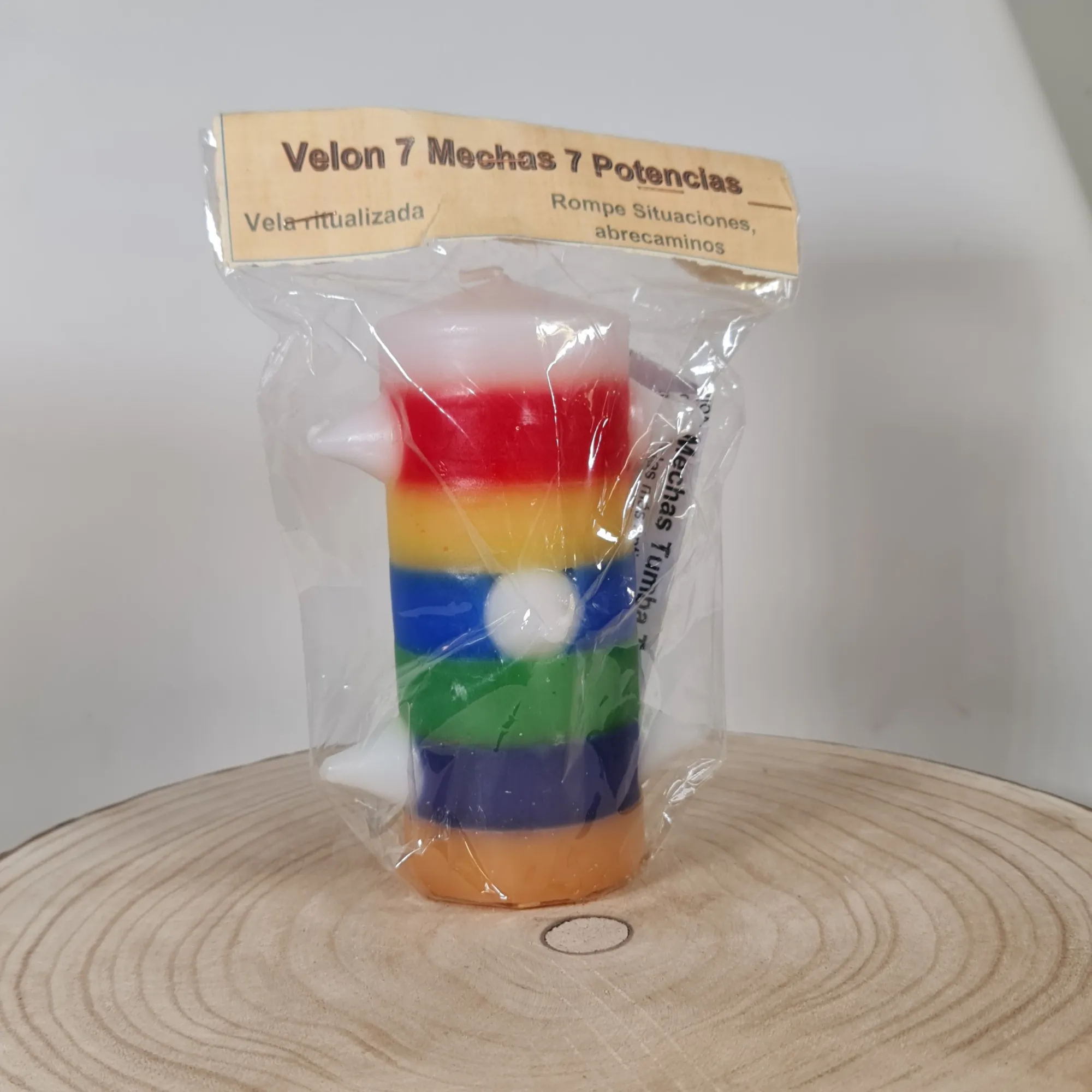 El Velón 7 Mechas 7 Potencias es una vela esotérica ritualizada, ideal para romper bloqueos energéticos, abrir caminos y atraer la fuerza de las siete potencias espirituales. Su diseño colorido, con franjas de siete colores y siete mechas colocadas estratégicamente, simboliza la conexión con diferentes planos energéticos y la activación de diversas áreas de la vida como el amor, la salud, la economía y la protección. Este velón es un elemento infalible en rituales de limpieza profunda, transformación espiritual y atracción de nuevas oportunidades.